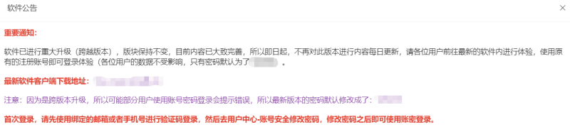通知:软件已进行跨版本升级,请各位用户搬迁到最新客户端